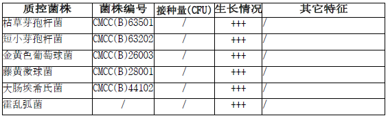 按标签用法制备培养基,接种以下质控菌株,放置35-37℃需氧培养20-24小时。
