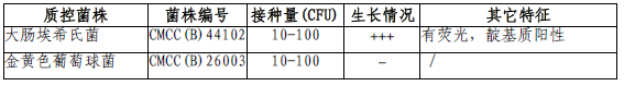 按标签用法制备培养基,接种以下质控菌株,放置30-35℃需氧培养5-24小时。