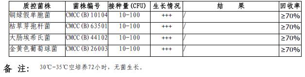 接种以下质控菌株,放置30-35℃需氧培养48-120小时。