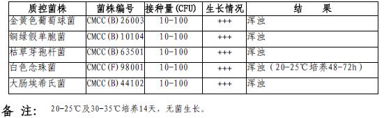 2. 定量限:适用于金黄色葡萄球菌、枯草芽孢杆菌、白色念珠菌等质控菌株的定量培养,符合药典生长性能要求[5]。
