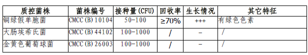 2. 定量限:每平板可分辨10-300CFU的铜绿假单胞菌菌落[6]