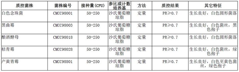 按标签用法制备培养基,接种以下质控菌株,放置28±1℃需氧培养72-96小时。