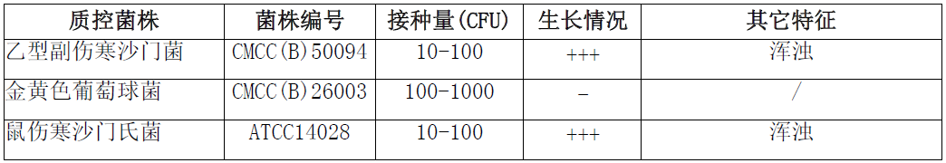 RV沙门菌增菌液体培养基(颗粒)微生物灵敏度试验: