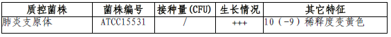 支原体检查法在2020年版《中华人民共和国药典》中体现,要求使用支原体肉汤培养基培养监测肺炎支原体。具体操作要求为:将肺炎支原体稀释至10-7~10-9,接种在支原体肉汤培养基中,每个稀释度接种3支试管,置于36℃培养7-14天,观察培养基变色结果。肺炎支原体可以发酵培养基中的葡萄糖,使培养基的pH值降低,遇指示剂酚红使培养基变黄。