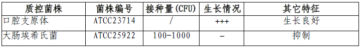 按标签用法制备培养基,接种以下质控菌株,放置36±1℃需氧培养7-14天。