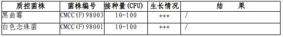 按标签用法制备培养基,接种以下质控菌株,放置23-28℃需氧培养96-120小时。