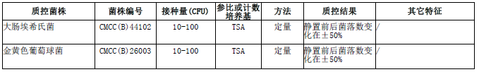 按标签用法制备培养基,接种以下质控菌株,放置25℃需氧培养45分钟。