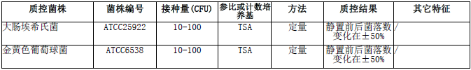 按标签用法制备培养基,接种以下质控菌株,放置20-25℃需氧培养45分钟。