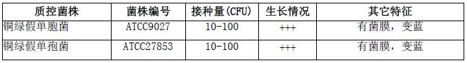 按标签用法制备培养基,接种以下质控菌株,放置36℃需氧培养18-24小时。