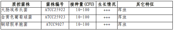 按标签用法制备培养基,接种以下质控菌株,放置35±2℃需氧培养16-18小时。