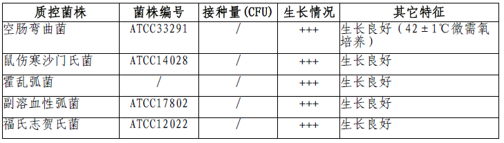 按标签用法制备培养基,接种以下质控菌株,放置20-25℃需氧培养48小时。
