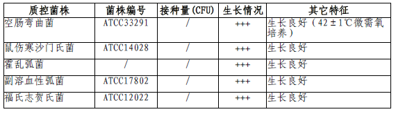 按标签用法制备培养基,接种以下质控菌株,放置20-25℃需氧培养48小时。