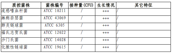 按标签用法制备培养基,接种以下质控菌株,放置36±1℃需氧培养18-24小时。