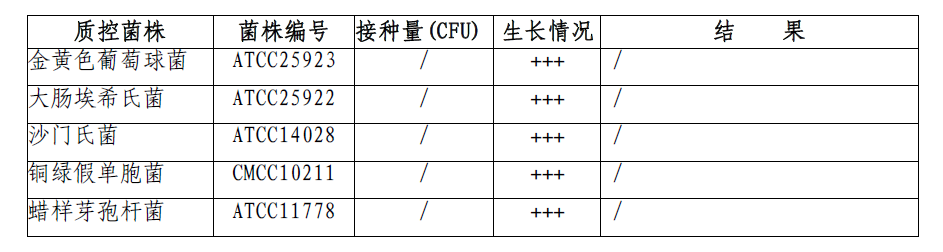 接种以下质控菌株,放置36±1℃需氧培养18-24小时。
