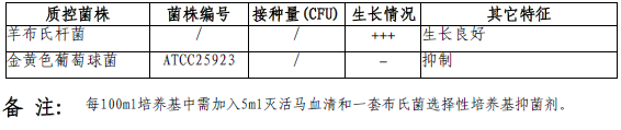 按标签用法制备培养基,接种以下质控菌株,放置36±1℃需氧培养72-120小时。