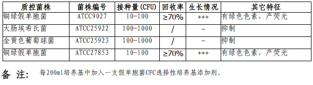 假单胞CFC选择性培养基的微生物质控结果