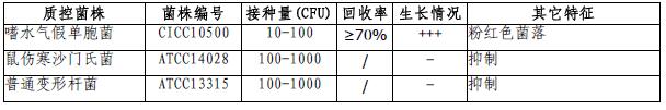2. 阴性对照:大肠埃希氏菌ATCC25922,应被完全抑制或形成桃红色菌落;