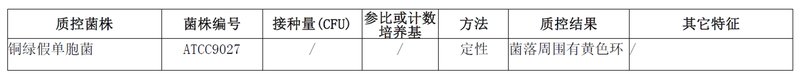 按标签用法制备培养基,接种以下质控菌株,放置35℃需氧培养24小时。