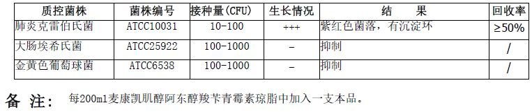 按标签用法制备培养基,接种以下质控菌株,放置36±1℃需氧培养18-24小时。