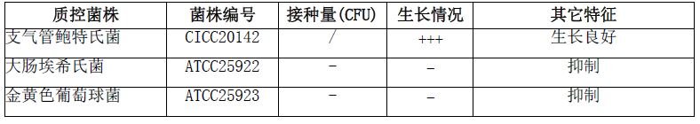 按标签用法制备培养基,接种以下质控菌株,放置36℃需氧培养18-24小时。