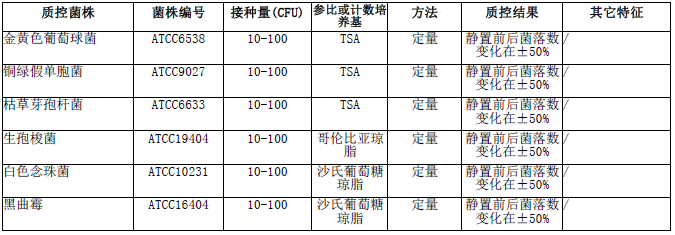 pH7.0缓冲氯化钠蛋白胨溶液(USP)微生物灵敏度试验: