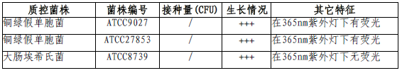 按标签用法制备培养基,接种以下质控菌株,放置30-35℃需氧培养18-24小时。