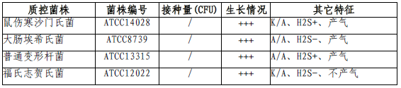 按标签用法制备培养基,接种以下质控菌株,放置30-35℃需氧培养18-24小时。