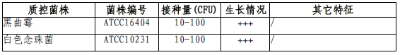 按标签用法制备培养基,接种以下质控菌株,放置20-25℃需氧培养48-72小时。