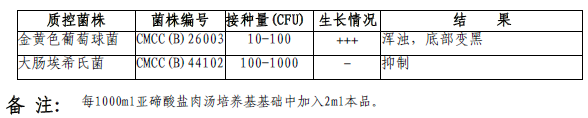 亚碲酸钾可抑制绝大部分的革兰氏阴性细菌,而大肠埃希氏菌O157菌、变形杆菌、霍乱弧菌对其耐受性强。在革兰氏阳性细菌中,葡萄球菌和白喉杆菌对其耐受性强,其他革兰氏阳性细菌受到不同程度的抑制。