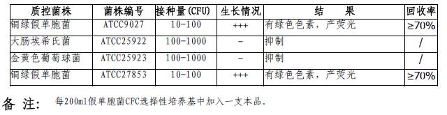 假单胞菌CFC选择性培养基添加剂(冻干粉)微生物灵敏度试验: