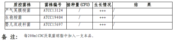 按标签用法制备培养基,接种以下质控菌株,放置36±1℃厌氧培养48-72小时。
