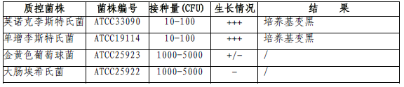 按标签用法制备培养基,接种以下质控菌株,放置30±1℃需氧培养25±1小时。