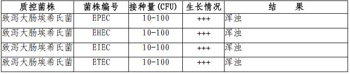 按标签用法制备培养基,接种以下质控菌株,放置44.5±0.2℃需氧培养18-24小时。