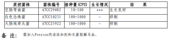 按标签用法制备培养基,接种以下质控菌株,放置42±1℃微需氧培养24-48小时。