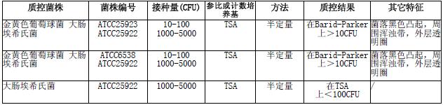 按标签用法制备培养基,接种以下质控菌株,放置36±1℃需氧培养18-24小时。