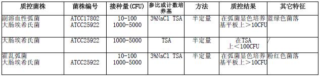按标签用法制备培养基,接种以下质控菌株,放置36±1℃需氧培养8小时。