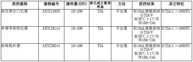 按标签用法制备培养基,接种以下质控菌株,放置36±1℃需氧培养8小时。