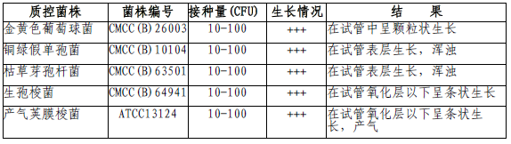 硫乙醇酸盐流体培养基管(7.5ml)微生物灵敏度试验: