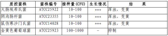 接种以下质控菌株,放置36±1℃需氧培养18-24小时。