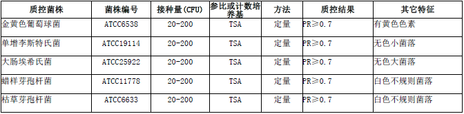 • 需同步检测大肠埃希氏菌ATCC25922、金黄色葡萄球菌ATCC6538、枯草芽孢杆菌ATCC6633