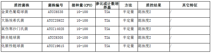 脑心浸出液肉汤(BHI)微生物质控结果:
