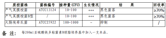 按标签用法制备培养基,接种以下质控菌株,放置37±1℃厌氧培养24-48小时。