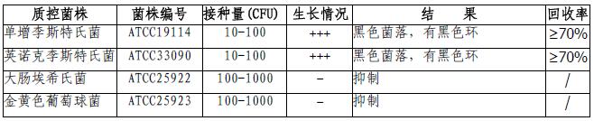按标签用法制备培养基,接种以下质控菌株,放置35±1℃需氧培养24-48小时。