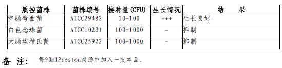 含90ml Preston肉汤均质袋添加剂微生物灵敏度试验:
