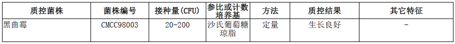 营养盐琼脂培养基(NSA)微生物灵敏度试验:按标签用法制备培养基,接种以下质控菌株,放置20-25℃需氧培养72-120小时。