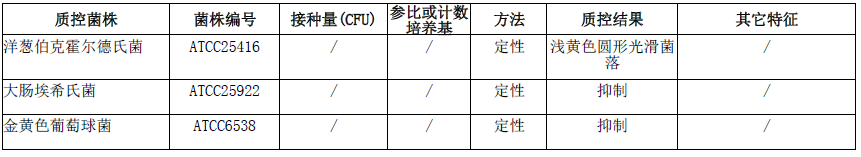 按标签用法制备培养基,接种以下质控菌株,放置36±1℃需氧培养24-48小时。