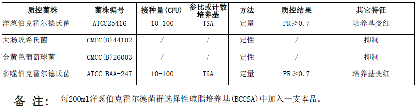 BCCSA抑菌剂(1ml*5)/每200ml洋葱伯克霍尔德菌群选择性琼脂培养基(BCCSA)中加入1支BCCSA抑菌剂