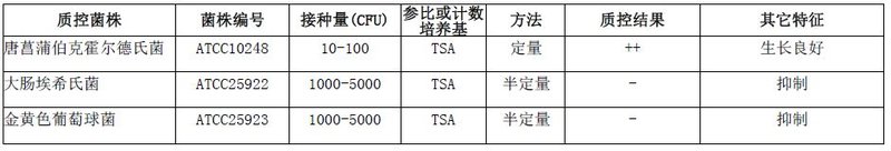 按标签用法制备培养基,接种以下质控菌株,放置36±1℃需氧培养48小时。