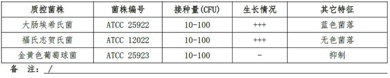 中国蓝琼脂微生物质控结果: