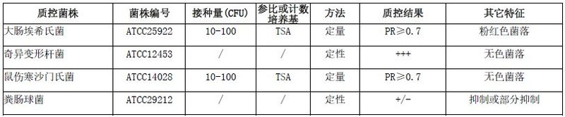 按标签用法制备培养基,接种以下质控菌株,放置36±1℃需氧培养24-36小时